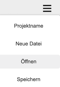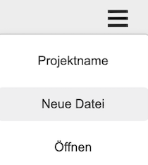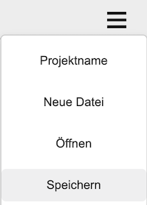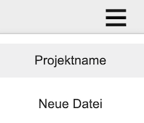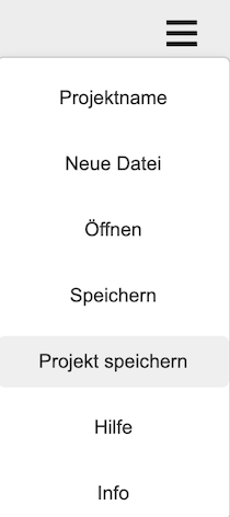 Mit diesem Menüpunkt lässt sich der Name des Projekts ändern. Nach dem Click öffnet sich ein Textfeld, in das man dem Namen des Projekts eintragen kann. |