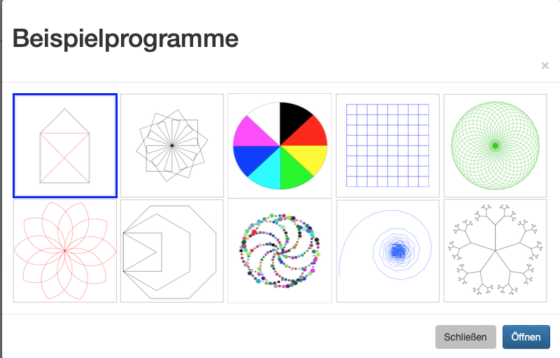 Turtle-Visuell ist eine browserbasierte Entwicklungsumgebung mit der sich Turtlegrafiken visuell programmieren lassen. Das Tool bietet außerdem die Möglichkeit, die visuellen Programme in Python zu übersetzen und die browserbasierte Python-Entwicklungsumgebung WebTigerPython mit diesem Programm zu öffnen.