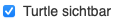 | Wenn der Haken gesetzt ist, ist die Turtle im Grafikfenster sichtbar, wenn er nicht gesetzt ist, verschwindet die Turtle. Durch Klick lässt sich die Sichtbarkeit ändern. Bei Programmen, die lange laufen ist es sinnvoll, aus Geschwindigkeitgründen die Turtle unsichtbar zu machen. | |